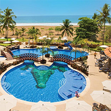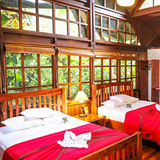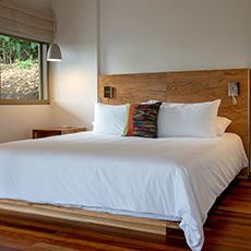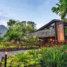 Tabacón is a luxury spa resort situated at the foot of Arenal Volcano, with the finest natural hot springs in La Fortuna running through this lush 900-acre property. Each spacious guest room has elegant décor with natural stone floors, local artwork, en-suite bathroom with rainforest shower, seating area and floor-to-ceiling windows. Free WiFi, cable TV, air-conditioning, minibar, safe, Nespresso coffee machine, hairdryer, bathrobes, slippers and toiletries are provided. The main hotel has two bars, a fine dining restaurant, outdoor thermal pool, jacuzzi, spa and large gym. Guests can take the free shuttle (or walk) to the extensive thermal hot springs, with all-day access. There is another restaurant and bar at the hot springs, which are open to day visitors.