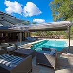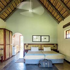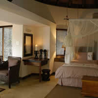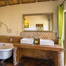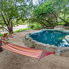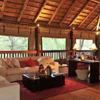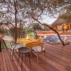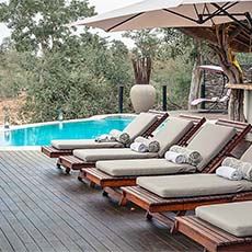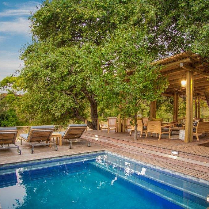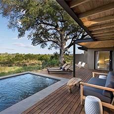 Tengile River Lodge is a luxury eco-friendly camp situated on the banks of the Sands River in the Sabi Sands sector of the Kruger National Park. Each spacious contemporary suite features floor-to-celing windows, terazzo flooring, stone walls, metal and wooden furnishings, loouge area and large en-suite bathroom with bathtub, indoor and outdoor rain showers, marble twin basins, and veranda with private plunge pool. Free Wi-Fi, air-conditioning, ceiling fan, safe, minibar and tea/coffee facilities are provided. You can relax in the lounge, bar, main deck or spa. There is also a swimming pool, gym, restaurant and outdoor boma.
