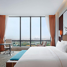 Lalit, Great Eastern is a luxury 5-star hotel situated a short walk from the historic colonial centre of Calcutta. The building is a fusion of contemporary and period architecture, with spacious and stylish air-conditioned guest rooms that feauture wooden floors, premium bathroom, seating area and terrace or pool views. Satellite TV, free Wi-Fi, bathrobes, slippers, complimentary toiletries, coffee-maker, safe, mini-bar and hairdryer are provided. There are three restaurants that serve international and specialist cuisine, as well as a bar, lounge, gym and outdoor swimming pool.