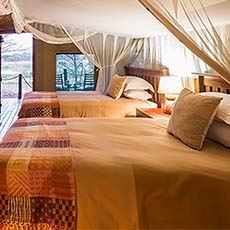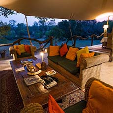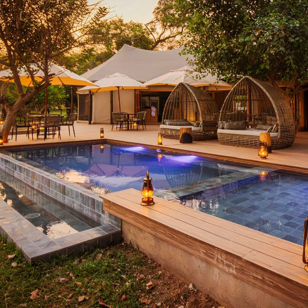 Thornicroft is a simple tented camp situated between a lagoon and the Luangwa River, close to the entrance to South Luangwa National Park. Wildlife often passes through the camp at night to graze, while during the day elephant, monkeys, mongoose, baboons and giraffes may visit. Each tented chalet has rustic décor, tiled floor, large windows, tea/coffee facilitie, private bathroom with shower and veranda. The spacious thatched main lodge has a lounge, dining area and bar. There is also an outdoor swimming pool and fire pit, where you can relax under the stars.